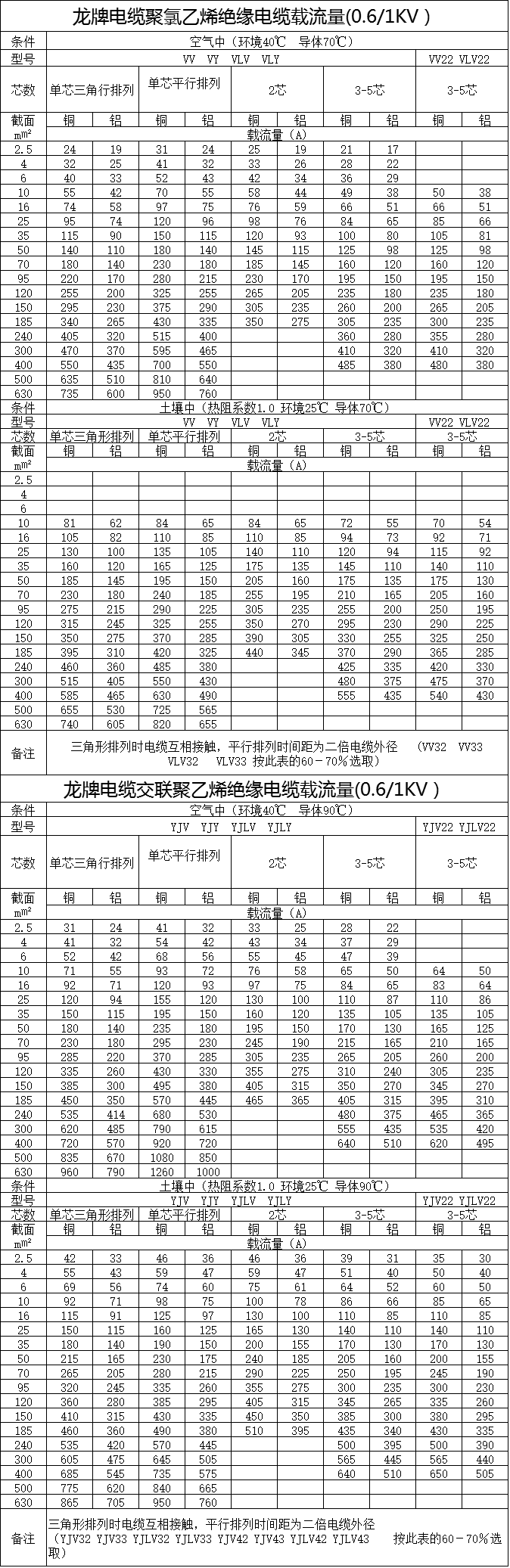 以上數據只適用于延長牌國標電纜,僅供參考,請以專業計算為準。